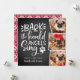 Cartão com fotos de feriado branco bonito em forma quadrada única apresenta três fotos favoritas em um layout de colagem. "Latido! "Os anjos das aranhas cantam" aparece à esquerda em tipografia com letras brancas e com letras brancas sobre um fundo do quadro, acentuado com uma ilustração impressa na pata do cão. Personalize com sua saudação e nomes personalizados abaixo.
