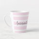 Esta caneca de café apresenta um design de rosas cor-de-rosa em um fundo listrado de rosa e branco. Personalize esta caneca com seu nome ou outro texto.