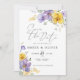 Floral Amarelo lavanda Salve O Convite De Data. Elegante e romântico guarde o cartão de data com belas lavandas pintadas manualmente e flores amarelas com um roteiro elegante de caligrafia. Um casamento floral moderno salve o cartão de data. Você pode personalizar o texto, o estilo da fonte, a cor e o tamanho em frente e atrás do cartão. Por favor, sinta-se à vontade para contactar-me para obter os itens correspondentes.