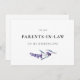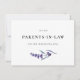 Aos meus pais em Direito no meu cartão de dia de casamento. Um cartão simples e elegante para escrever uma mensagem pessoal e sincera para seus pais em direito no dia do seu casamento, com um design de aquarela clássico e elegante, perfeito para um casamento de primavera floral. Você pode adicionar uma mensagem no verso ou deixá-la vazio se preferir escrever manualmente a mensagem mais tarde.