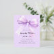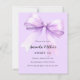 Lavanda macia, fundo de cor púrpura, decorado com um arco grande. Personalize e adicione um nome e detalhes da parte. 1 folha = 1 convite impresso de borda a borda.