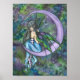 Uma fada sentada numa lua lavanda.