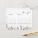 Receba cartões perfeitos para seus convidados de casamento/chá de panela completarem para a noiva ser. Design simples com ramificação lilás.