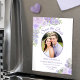 Este belo casamento magnético, que salva os cartões de data, apresenta um design floral roxo, mas elegante, pintado com sua foto em um quadro oval cercado por rosas de aquarela, flores e flores em tons de roxo claro, lavanda e lilás, com um bando de folhas de eucalipto, verde e folhagem. A tipografia apresenta letras de rico. Este cartão de chic na moda boho é uma forma excelente de garantir que seus amigos e familiares estejam cientes do seu próximo casamento.