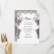 Um menu de casamento de borda floral de lavanda suave com texto de lavanda correspondente. Este menu de casamento é parte de um conjunto completo.