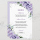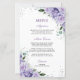 Lavanda Lilás Roxo Menu Bridal Floral de Casamento
