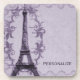 Proteja os topos de contadores e mesas com esta design de porta copos atraente que apresenta a Torre Eiffel contra uma espiral de ressonância e fundo de selo de correio em roxo de lavanda. O texto personalizável permite alterar fontes, alterar cores e tamanhos de texto conforme desejar. Personalize você mesmo ou faça um presente de excelente.