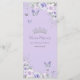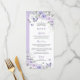 Personalize esses cartões de menu florais bonito fácil e rapidamente. Basta clicar no botão personalizar para editar os textos, alterar as fontes e as cores das fontes. Apresentando flores púrpuras, lavandas pastéis bonito, verde delicado e borboletas roxas e prateadas. Excelente para Quinceañera, Doce 16, 18 anos, bola de debutante, chá de panela, aniversário e muitas outras ocasiões! Itens correspondentes disponíveis no repositório. c) Paperie fina somerset