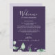 Estas lavandas roxas e cartas itinerantes são perfeitas para um casamento simples e elegante ao ar livre. O design floral apresenta folhas de cor aquosa de eucalipto e de verde, com espinhas roxas de flores silvestres sobre fundo roxo de ameixa. A frente da carta apresenta uma carta de boas-vindas e a parte de trás da carta apresenta o itinerário do casamento. Estas notas são perfeitas para casamentos de destino e bolsas de boas-vindas de hóspedes.