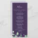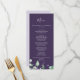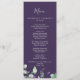 Este cartão de cardápio de janto de casamento roxo, de lavanda rústica, é perfeito para um casamento simples e elegante ao ar livre. O design floral apresenta folhas de cor aquosa de eucalipto e de verde, com espinhas roxas de flores silvestres sobre fundo roxo de ameixa. Este menu pode ser usado para recepção de casamento, janto de ensaio ou qualquer evento.