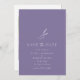 Simples Lavanda Linha Botânica Desenhando Minimalista Salve O Convite De Casamento De Data. Lavanda minimalista do tema da Modelo no estilo Chic boêmico com lavandas elegantes e únicas e arte de desenho de linha botânica. A cor de fundo mauve é perfeita para casamentos roxos e casamentos lilases. Modelo simples e imprimível para primavera, verão, outono (outono) e casamentos no inverno.