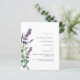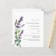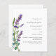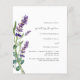 Um fundo branco decorado com uma flor de lavanda grande e um rolo verde de eucalipto. Personalize e seus nomes e detalhes. 1 folha = 1 convite impresso de borda a borda.