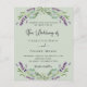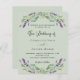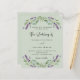 Um fundo verde sábio decorado com flores lavandas e verde de eucalipto. Personalize e seus nomes e detalhes. Voltar: adicione seu URL da Web ao seu site de casamento para RSVP e mais detalhes. 1 folha = 1 convite impresso de borda a borda.