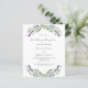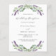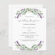 Um fundo branco decorado com flores lavandas e verde de eucalipto. Personalize e seus nomes e detalhes. 1 folha = 1 convite impresso de borda a borda.