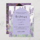 Frente: flores de lavanda como fundo e uma armação de arco. Personalize e seus nomes e detalhes. Voltar: Personalize e adicione sua foto. 1 folha = 1 convite impresso de borda a borda.