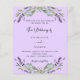 Um fundo violeta decorado com flores de lavanda e verde de eucalipto. Personalize e seus nomes e detalhes. Voltar: adicione seu URL da Web ao seu site de casamento para RSVP e mais detalhes. 1 folha = 1 convite impresso de borda a borda.