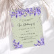 Um plano verde da moda. Decorados com bordas de lavanda e poeira brilhante colorida. Personalize e adicione seus nomes e detalhes. 1 folha = 1 convite impresso de borda a borda.