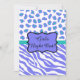 Personalize este convite colorido e sofisticado para comemorar com uma festa do Girls Night Out. A design apresenta lavanda roxa e listras-zebra brancas e roxas e peles-leopardo ou-chita combinadas para uma design moderna e tenda. Um emblema roxo lavanda esboçado em preto sobre um bar azul-azul-turquesa e cria uma área de personalização, com as palavras personalizáveis "Girls Night Out" que podem ser personalizadas para outras palavras. O verso do convite inclui campos para todas as suas informações para o seu partido. Você pode facilmente alterar e excluir campos conforme necessário. As cores são a lavanda dos piscadinhos, branca, azul-azul-turquesa, preta e verde limão. Peles de animais selvagens para design gráfico é uma tendência de arte quente e design, e é extremamente popular de moda a decoração doméstica. Esta coleção sofisticada de impressões zebra e leopardo é uma das várias combinações de cores disponíveis para a escolha de convites e coordenadas com outros produtos para uma na moda.