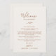 Esta carta de boas-vindas e cartões itinerários são perfeitos para um casamento. A design apresenta uma simples silhueta verde folha em laranja queimado no fundo de creme com estilo minimalista da boêmia do deserto. A frente da carta apresenta uma carta de boas-vindas e a parte de trás da carta apresenta o itinerário do casamento. Estas notas são perfeitas para casamentos de destino e bolsas de boas-vindas de hóspedes.