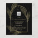 Apresentando um item de casamento de gravata negra suavemente formal com cores pretas e douradas adornadas com delicadas folhas de esqueleto de ouro sobre as bordas de uma armação arcaica. Este design faz parte de uma coleção de coordenação e inclui itens como cartões RSVP, salvamento de datas, convites, sinais de boas-vindas, adesivos, programas, cartões de número de tabela, bolsas de favorecimento, menus e etiquetas de garrafas de vinho, bem como uma variedade de tipos de cartão e papel para ajustado de qualquer orçamento. Esta design seria adequada para os seguintes temas de casamento: casamentos temáticos, casamentos temáticos caindo ou românticos, casamentos temáticos de outono ou jardim ou casamentos temáticos ao ar livre, casamentos temáticos russos ou boêmicos, contos de fada ou encantados, casamentos temáticos de vintage ou chique, casamentos clássicos ou eternos, Elegante ou em escala superior Casamentos.