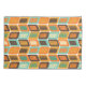 Este travesseiro tem uma design moderna do século médio de retângulos arredondados inclinados para o lado com retângulos inclinados dentro feitos de linhas todas em cores dos anos 70.