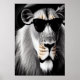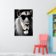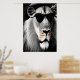 Arte negra e branca de uma cabeça de leão com óculos de sol. Esta é uma arte gerada por IA.