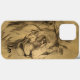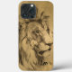 Capas de iphone elegante feita num antigo olhar de ouro, com uma ilustração da cabeça de leão. O texto negro, no fundo do caso, lê Leo.