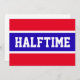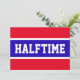 Este design desportivo divertido apresenta letras grandes, fortes e clássicas, dentro a, uma faixa azul bastante vívida e destacada, com pinstripes brancas sobre um fundo vermelho brilhante com "HALFTIME" soletrado frente e centro. As cores e o texto neste design podem ser personalizados.