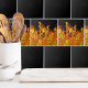 Abstrato preto-amarelo-preto-brilhante,, chama Azulejo cerâmico. As voltas e voltas dessas chamas laranja e amarela são compostas por pequenos círculos em explosão. Deslocado com um fundo preto para realmente fazê-lo pop! Para bombeiros ou embaixadores e muito mais! Ou pensem no quão legal isto seria como uma pancada de fundo para uma grelha! Quer queiras usar este azulejo como uma pequena porta copos ou trivit para uma bebida ou prato... ou queres ficar grande com uma pancada de cozinha, ou azulejo de banheiro, depende de ti! Faça uma parede de cheio, borda, ou apenas um azulejo de sotaque. Deixe seus sonhos de design interior voarem!
