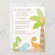 Este convite para festas de aniversário de rapazes 5x7 tem um tema de dinossauro fofo. Há uma palmeira com três dinossauros no fundo. Você pode personalizar facilmente as informações de sua parte no lado esquerdo. Cocoa Studio com