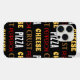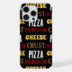 Legal e divertida piza peperoni... com um padrão de crosta de queijo... presente para o amante da pizza. Texto amarelo, vermelho, branco e marrom a preto. Queijo amarelo, pepperoni vermelho, pizza branca e crosta castanha. Design para comedores de pizza, amantes de pizza, pizzarias...