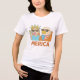 Celebre a liberdade com esta divertida e peculiar design Merica! Apresentando uma legal estátua da liberdade, ao estilo cartoon, e uma águia calva patriótica, que está balançando óculos de sol e pisando os sinais de paz, esta arte desenhada à mão acrescenta uma reviravolta divertida ao orgulho americano. Perfeito para o dia 4 de julho, Dia da Independência, ou qualquer pessoa que ame liberdade, humor e vibrações vermelho-branco-azul. Excelente para autocolantes, t-shirts e presentes!