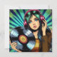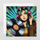 Pop com fones de ouvido em ouvir música e um disco de vinil em suas mãos.