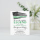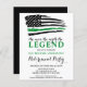 O Homem O Mito A Lenda! Convites à Reforma Militar da Linha Verde fina. Celebre anos de serviço dedicado, sua aposentadoria militar e convide amigos e familiares para o seu partido militar com este moderno Convite à Reforma Militar de Bandeira Verde. DESIGN americano na bandeira da Polícia, cores, design branco preto vestido e verde. Veja nossa coleção para combinar presentes de aposentadoria militar, favoritos para festas militares de aposentadoria e suprimentos. COPYRIGHT © 2021 Judy Burrows, Black Dog Art - Todos Os Direitos Reservados. Legenda Fina Linha Verde da Reforma Militar de Orçamento