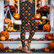 Estas Pumpkin de Halloween e Leggings Festivas do Crânio exibem um design lúdico, mas assustador, com abóboras laranja brilhantes e crânios assustadores colocados sobre um fundo escuro. Ideal para adicionar um talento sazonal ao seu guarda-roupa, estas leggings confortáveis são perfeitas para festas de Halloween, reuniões temáticas ou visto festivo do dia a dia.