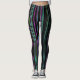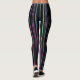 Um desenho abstrato composto por linhas verticais magenta, púrpura, verdes e azuis, finas, sobre fundo preto.