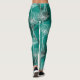 Leggings para mulheres, Lírios d'água em branco e preto em leggings verdes no chão.