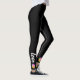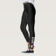 O vôlei da folha arco-íris adora leggings em preto sólido. O texto pode ser personalizado para o seu nome ou número de camisa ou alterado para se adequar ao seu estilo pessoal. Ambas as localizações do tornozelo têm texto que pode ser personalizado. Três volichões multicoloridos ao redor da área do tornozelo.