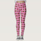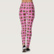 Estas leggings festivas apresentam presentes vermelhos de Natal com arcos verdes num fundo cor-de-rosa com folhas e bagas ocas.