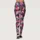 Ara Parrot Vermelho Cor-De-Rosa Desenhando Leggings De Padrões Tropicais. Padrão de ara sobre fundo azul escuro com folhas tropicais em cores verde, vermelha e bege. Ilustração desenhada à mão digital.