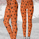 Teia de aranha negra e laranja, leggings de fantasia de Halloween. Legal padrão de diversão com o design de cobweb do Spooky Halloween. Legenda de Halloween personalizada com aranhas rasteiras grandes e pequenas assustadoras.