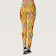 Estas leggings têm um design de deco de arte de formas de diamante feitas de ângulos sobrepostos em linhas pretas coloridas em tons de laranja e amarelo com linhas pretas diagonais fazeres a design parece argyle