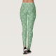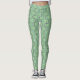 Estas leggings têm um design de deco de arte de meio círculo azul e roxo se conectam com linhas em um campo verde-claro.