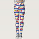Leggins com bandeira variante de Meclemburgo-Pomerânia Ocidental; design com cinco faixas horizontais de vermelho, branco, azul e amarelo, com ilustrações da cabeça do touro e da águia vermelha