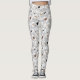 Cute bichon frise dogs in sweaters and bows with scattered dog bones and paw prints on a light gray background.
