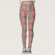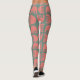 Estas leggings têm um design de flores corais se repetindo através do design num campo de verde.