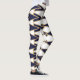 Estas leggings têm um design de deco de arte de triângulos e diamantes que se parecem com arcos em azul e ouro.