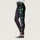 Leggings pretas elegantes, com a palavra "LIMITAR" em cores néon brilhantes com sotaques roxos, azuis e verdes vibrantes. O design dinâmico gera energia e motivação, perfeito para exercícios, yoga ou visto casual. Um texto ousado para indivíduos ativos e na moda.