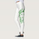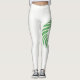 Impressão de cabeça de leão verde mostrada nas pernas pretas. Isso também está disponível impresso na perna oposta. A cor de fundo das leggings pode ser alterada para qualquer cor. Use o botão personalizar.