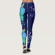 O esporte de designer feminino ou o leisurewear usava calças de yoga com flores em azul e uma dica de rosa. O impressão é amovível se preferir uma perna de cor sólida. O fundo azul escuro pode ser personalizado para qualquer cor.